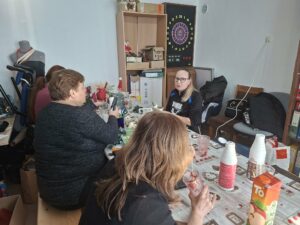 Povodom nadolazećih blagdana te advena udruga za Razvoj kreativnih radionica i kvalitete življenja osoba s invaliditetom Republike Hrvatske i udruga slijepiš Šestočka iz Pleternice odlučili su napraviti prigodno druženje između članova obje udruge. Boljem ugođaju doprinjelo je i izrada fritula.